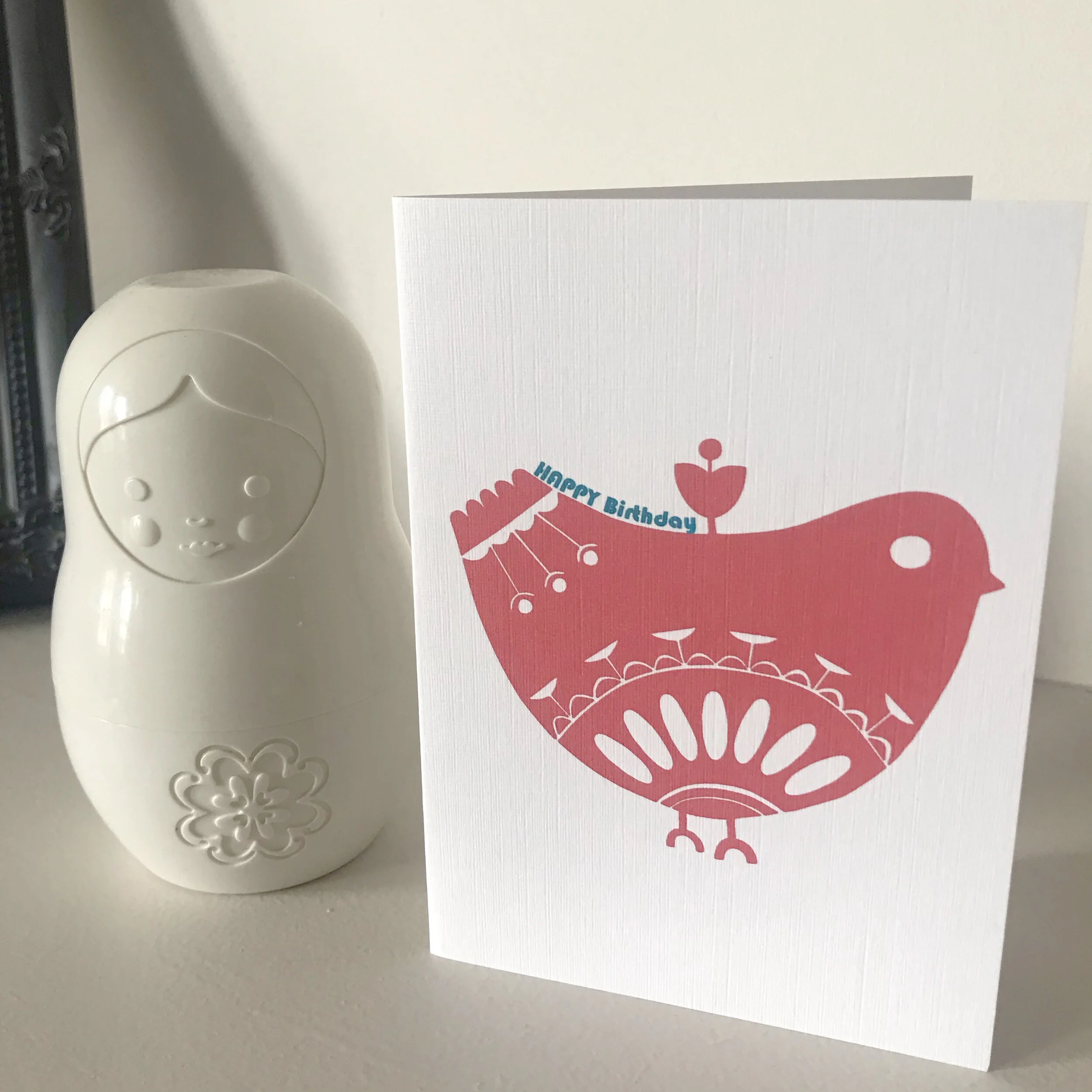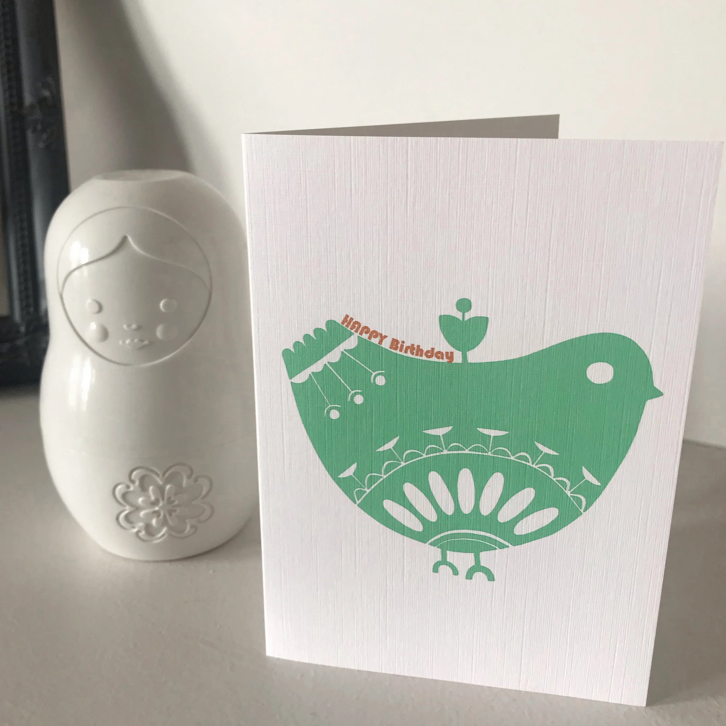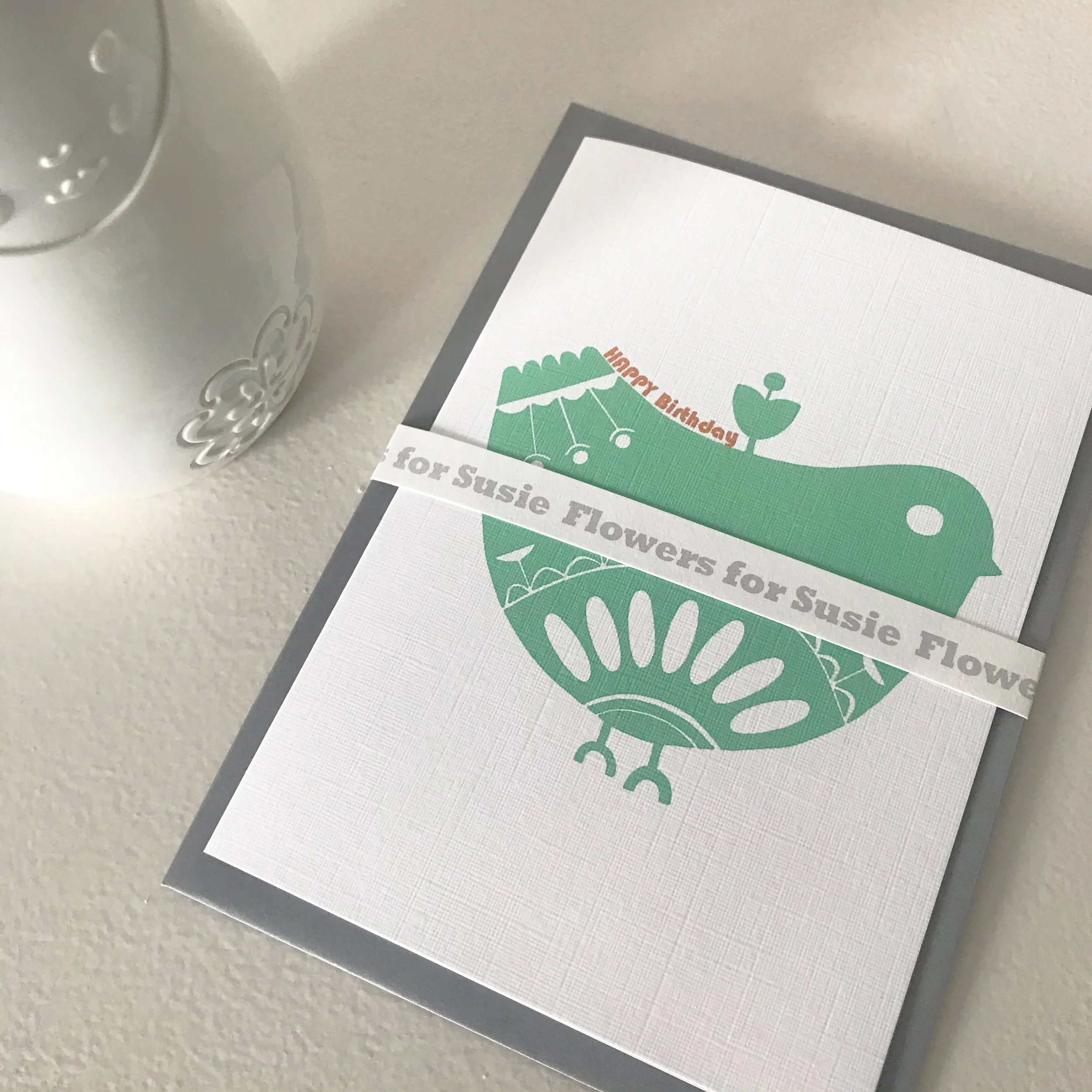 As with all my designs, the Birdie notecards are created in my studio by the sea; starting life as sketch, then developed as a lino print and finally digitally crafted to create the unique Flowers for Susie colour palette